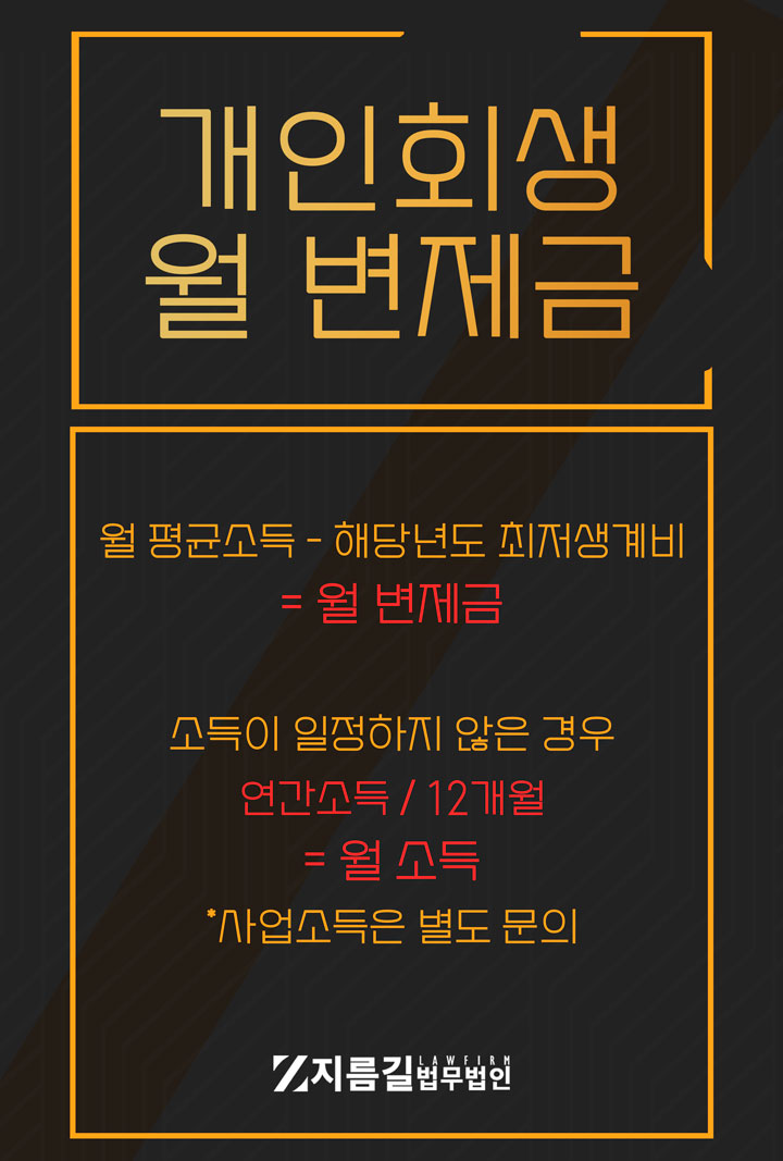 월 소득은 변제금 납부와도 밀접한 관계가 있습니다. 최저생계비는 기본적으로 사람이 살아가는 데 반드시 필요한 생계 비용이며 이와 같은 권리를 지켜주는 것으로 일상을 유지할 수 있도록 돕는다고 볼 수 있습니다. 하지만 그에 미치지 않는 소득이 유지된다면 제도를 이용하는 게 어려울 수밖에 없습니다.