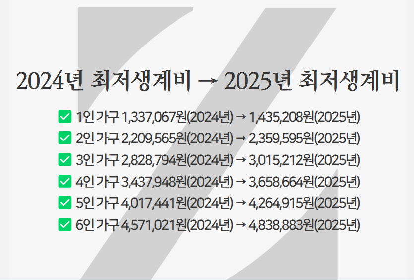 2. 2025년 1인 최저생계비 (外 2인, 3인, 4인, 5인 최저생계비)