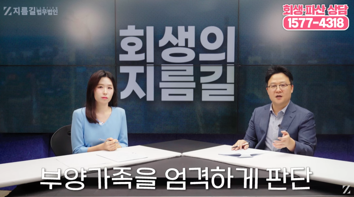 그렇기 때문에 거주하는 곳이 다른 상태에서 가족들과 따로 지내고 있거나, 함께 거주하며 생활하고 있다고 해도 실제로 채무자가 부양하고 있는지의 여부가 중요하기에 이를 명확하게 입증하는 과정이 필요합니다.