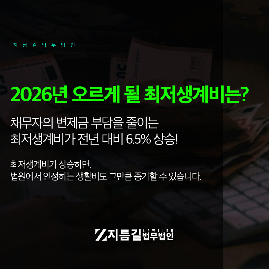 오늘은 2026년 개인회생 최저생계비가 얼마나 인상이 되는지,
