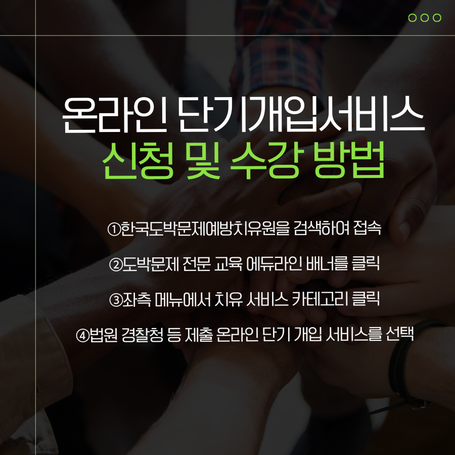 온라인으로 교육을 받을 수 있는 온라인 단기개입서비스를 제공하고 있죠.