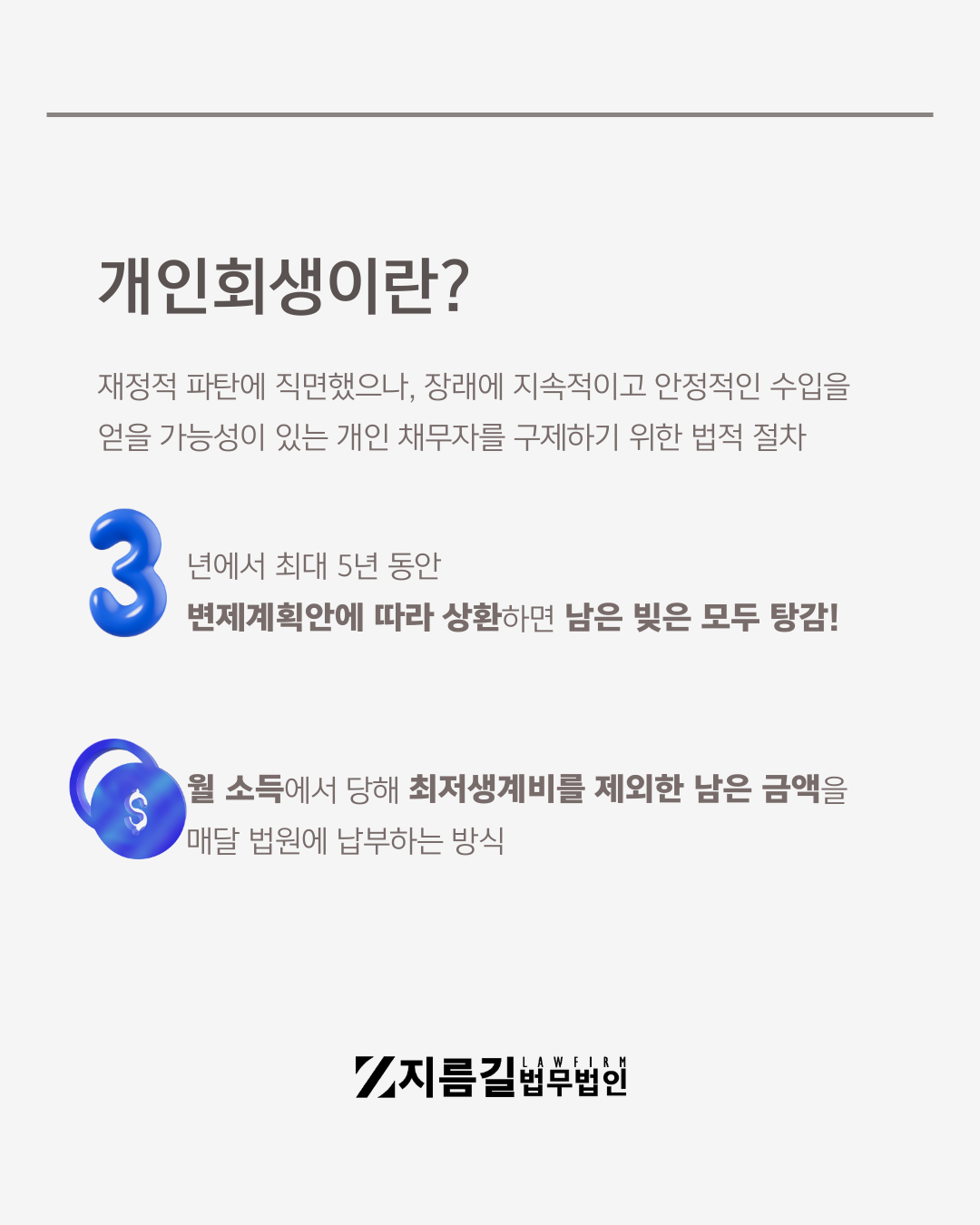채무자의 소득에서 생계비를 뺀 돈으로 3~5년간 성실히 갚는 것이 전제조건입니다.