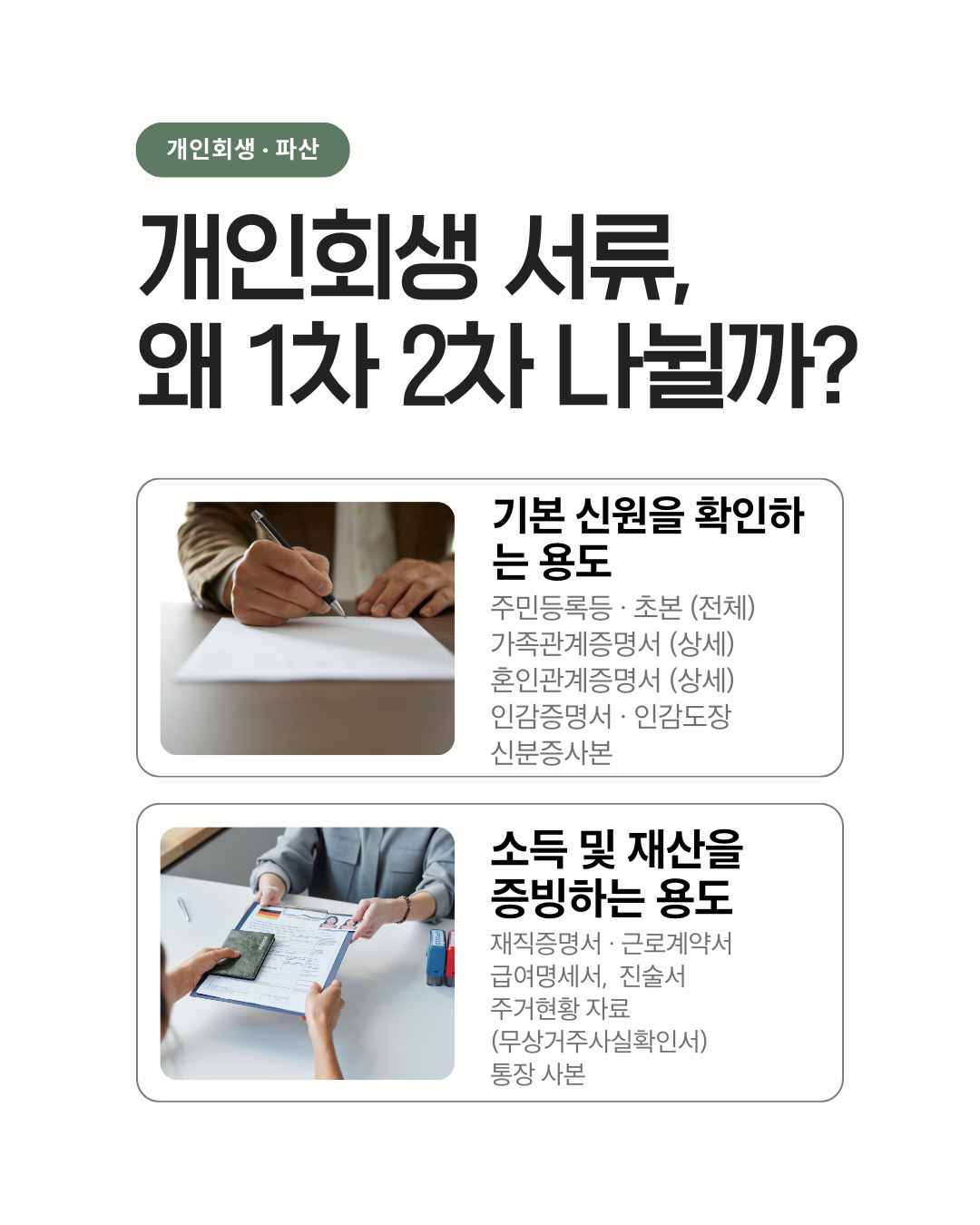 1. 개인회생 신청서류, 왜 1차와 2차로 나눌까요?