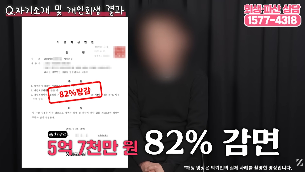 저희 의뢰인의 경우 이 인가결정을 통해 무려 82%의 빚을 탕감받았죠.