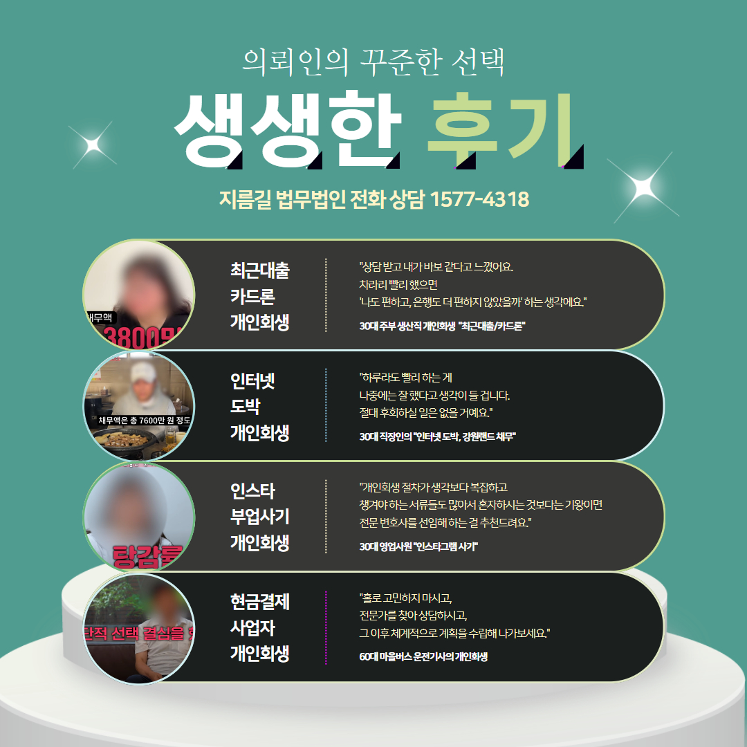 이뿐만 아니라 채권추심과 압류의 위험에서 탈출이 가능하고, 신용카드 결제대금이나 시중 은행, 2금융권 외에도 연체전 채무조정과 다르게 사채업이나 지인간의 금전거래 역시 탕감받을 수 있습니다.